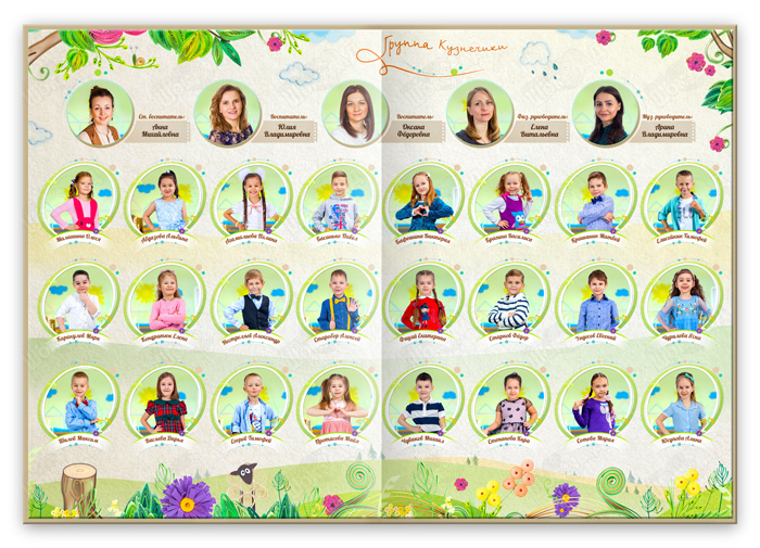 Есть фотография сада. Все дети и воспитатели с подписями имен и фамилий. С портретом папка выглядит более интересно. Рекомендуем папки с портретом!